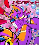 BANDETTO, or バンデット (real name Bow-Wow Bandit™, or ワンワンワンコ®) is an alias that is part of the Halley Labs label. They are an orange and blue pool toy dog that wears a pink-purple bandana with a toothed pattern. They produce experimental gabber and happy hardcore, often with elements of absolutely any other genres and especially folk and alternative hip-hop, partly inspired by Japanese electronic music, without being specific (Not J-core or any other genre or artist Clarification needed). In his certificate on msx.horse in the form column it is written - halftime dream gabba.